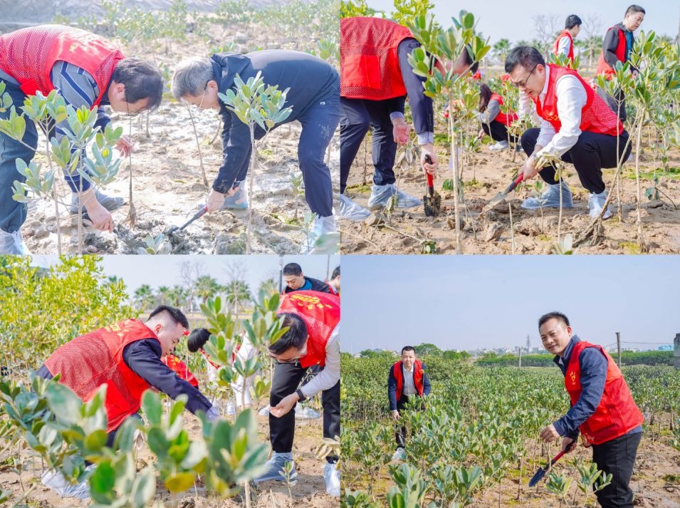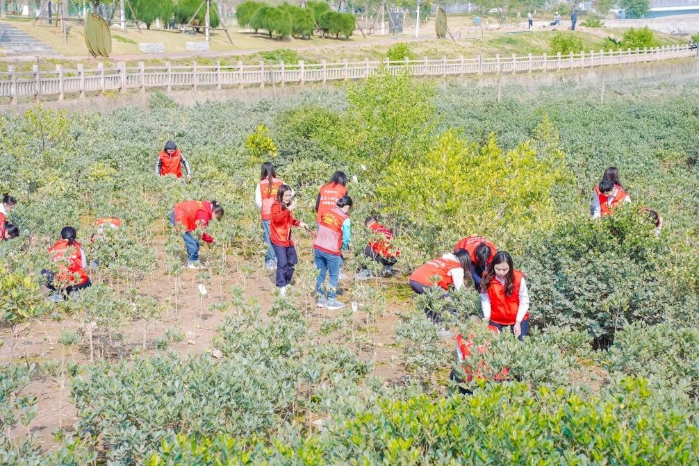 座談會后,志愿者代表們來到紅樹林種植灘涂區(qū)種植紅樹林,大家分工協(xié)作、密切配合,經(jīng)過半個小時的辛勤勞動,50余株紅樹林幼苗整齊地矗立在林地中,成為涵養(yǎng)生態(tài)、美化環(huán)境、保護氣候的“綠色衛(wèi)士”。